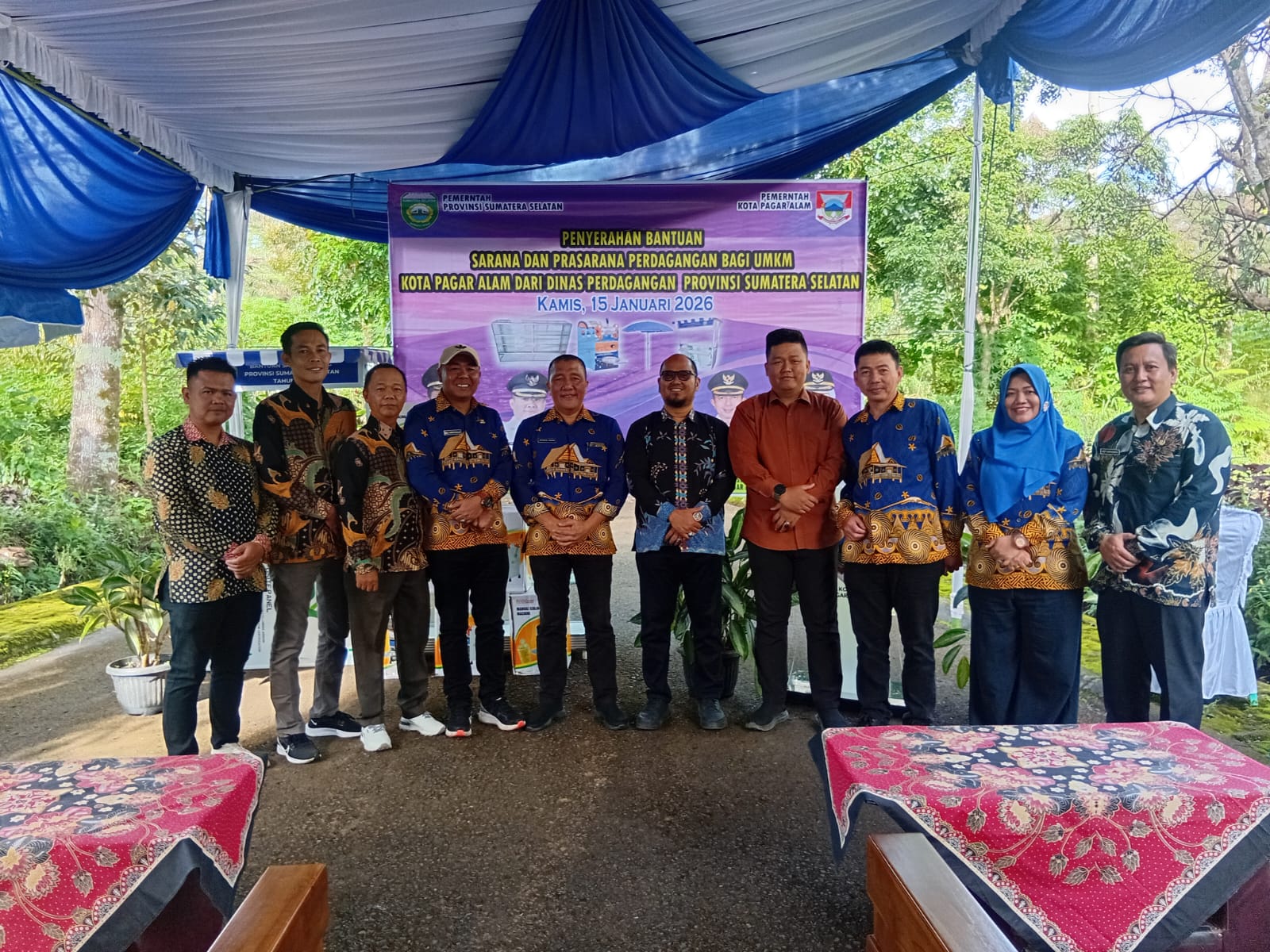 Dinas Perindag kota Pagar Alam melalui Bidang Perdagangan melaksanakan penyerahan bantuan sarana dan prasarana perdagangan bagi UMKM di Kota Pagar Alam, secara simbolis diserahkan oleh Sekretaris Daerah (Sekda) Kota Pagar Alam Zaily Oktosab Fitri Abidin, bertempat di Kantor Dinas Perindustrian dan Perdagangan, Kota Pagar Alam, pada Kamis pagi, 15 Januari 2026.