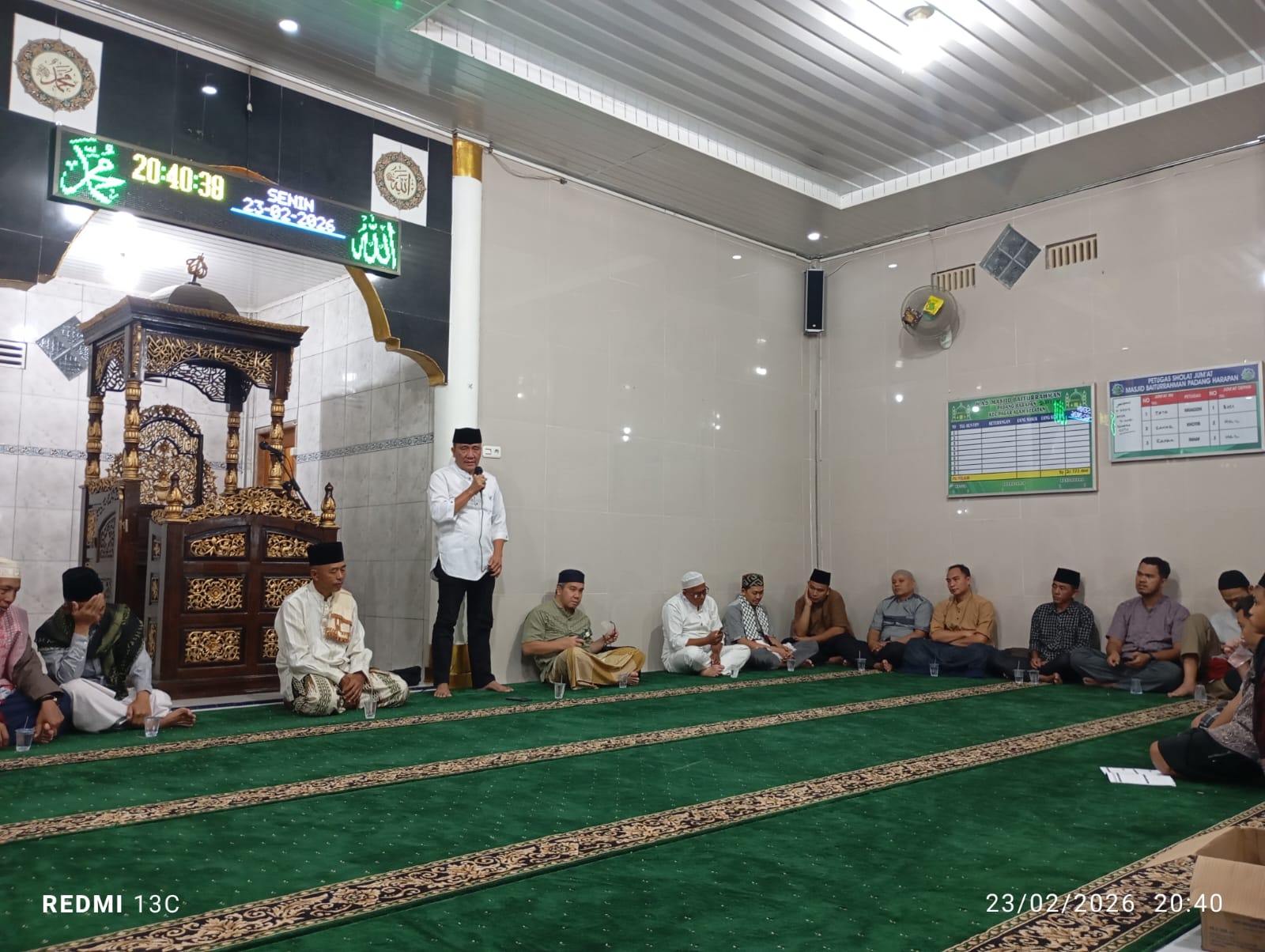 Selain melaksanakan ibadah bersama, kegiatan juga dirangkaikan dengan penyerahan cenderamata kepada pengurus masjid sebagai bentuk apresiasi serta dukungan terhadap kegiatan keagamaan di lingkungan masyarakat.